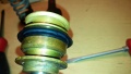 Die neuen Dichtungen innen mit Silikonfett leicht bestreichen, was die Montage erleichtert. Erst wird der mittlere Ring montiert, dann der obere, dann der untere.